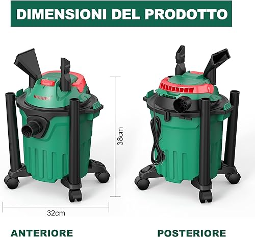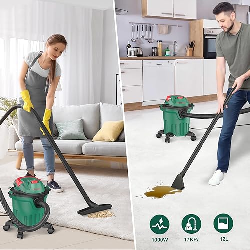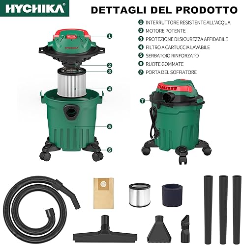 HYCHIKA 1000 W Aspirateur Eau Et Poussières, 3 en 1 Injecteur/Extracteur, Cuve : 12 l, Fonction de Nettoyage du Filtre, Fonction de Soufflage, Convient pour Les Petits nettoyages