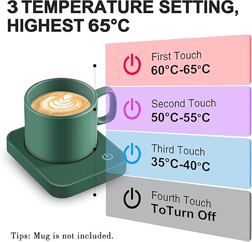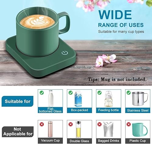 Chauffe Tasse et Chauffe Café, 3 Réglages de Température Chauffe Boisson, arrêt Automatique de 4 Heures, pour Le Bureau et la Maison Green(NO Cup