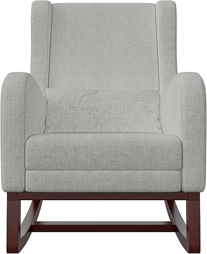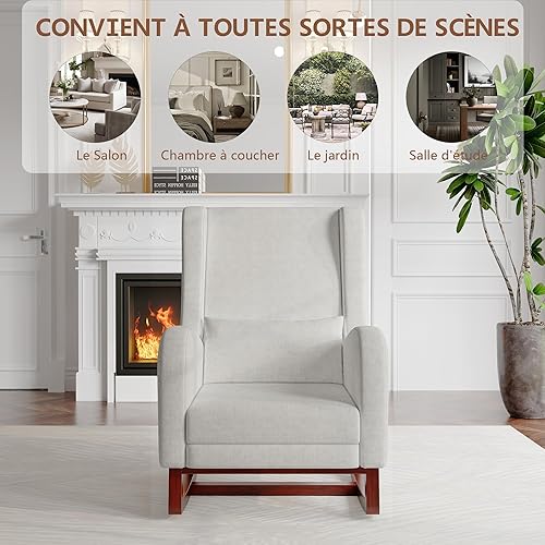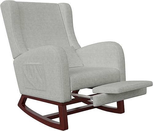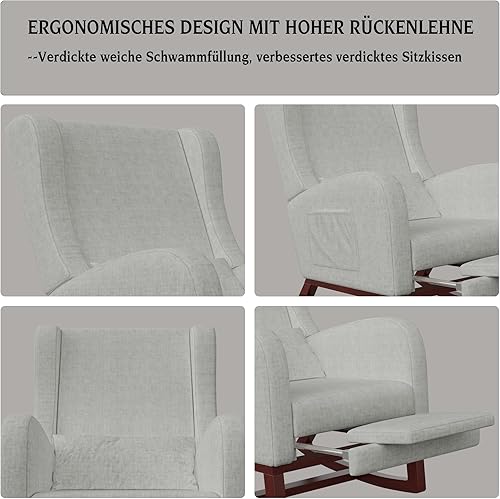 KeepGoon Fauteuil à bascule avec repose-pieds, pieds antidérapants en bois massif, coton et lin, chaise à bascule, fauteuil à bascule, chaise de relaxation (gris)