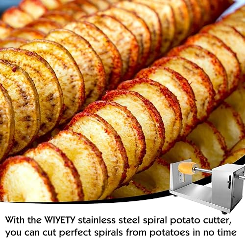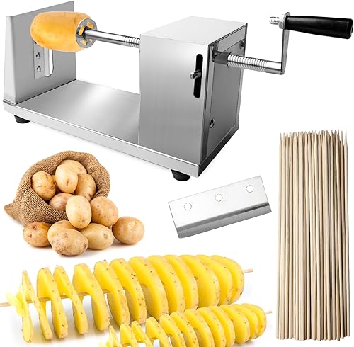 WIYETY Coupe-légumes en spirale en acier inoxydable : coupe-pommes de terre, avec 50 bâtons de bambou de 25 cm de long, coupe-pommes de terre, trancheuse multifonction pour pommes de terre