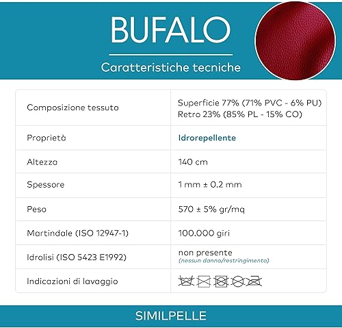 DESHOME Bufalo - Tissu au mètre faux cuir hydrofuge anti-fissuration simili cuir pour canapé, fauteuil, chaises, pouf, sacs Bleu 1 mètre