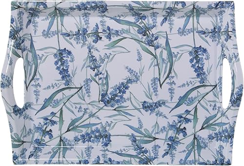 DRW Plateau rectangulaire en mélamine avec poignées et Fleurs en Bleu et Blanc 5x31x44 cm