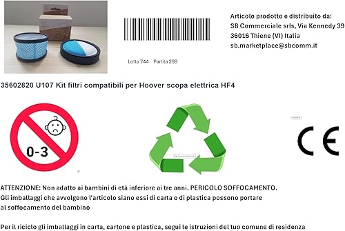 35602820 U107 Kit de filtres compatibles pour Hoover balai électrique HF4