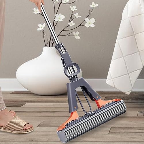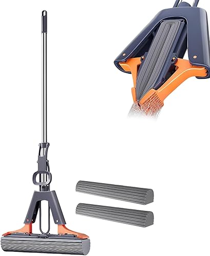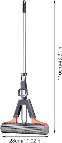 Bkljkf Manche Réglable De 110 Cm Balai Lave Sol avec 2 Têtes Eponge PVA Réutilisables, Balai Éponge Absorbant, Balai Lave Sol, Serpillière Éponge, Vadrouille À Presser, pour Sols Bois, Stratifiés