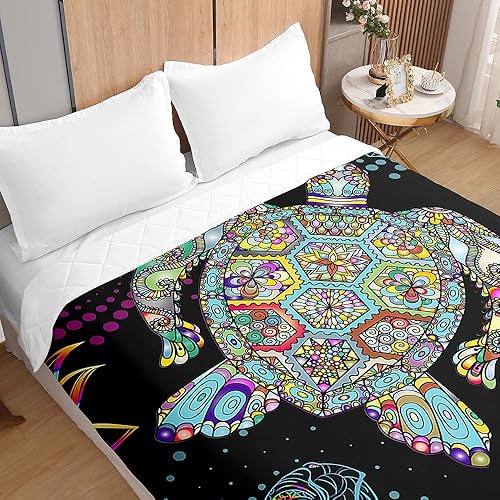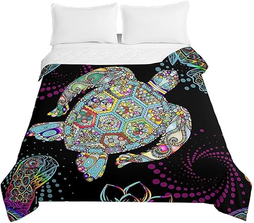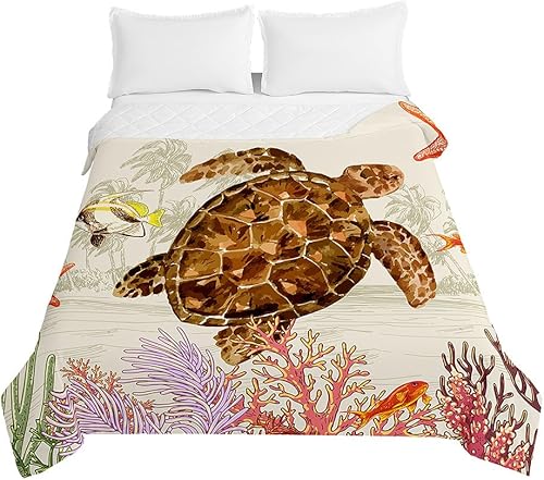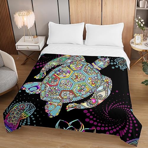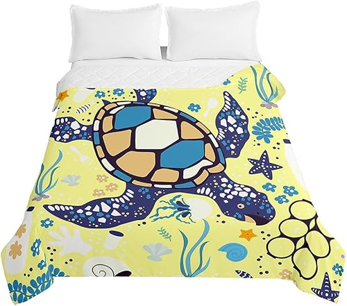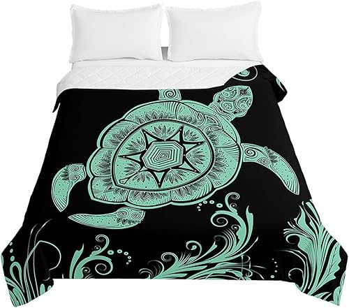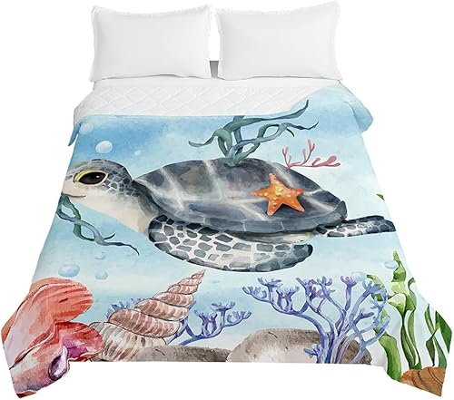 Hiseng Couette sans Housse, Tortue de Mer 3D Couette Ete Douce 1/2 Personne Léger Reversible Été Douce Microfibre Doux Jeté de Lit pour 4 Saisons (Bleu Aqua,100x150cm)