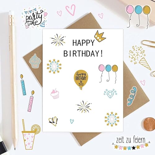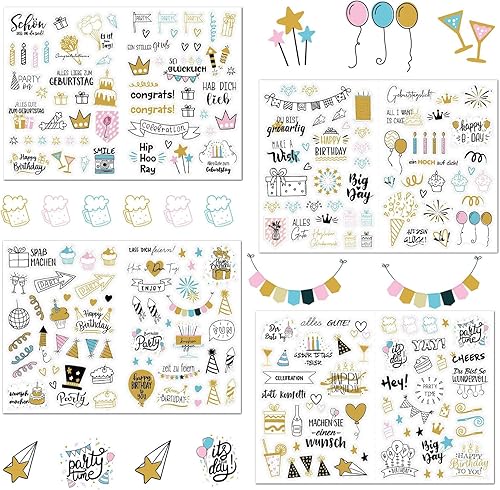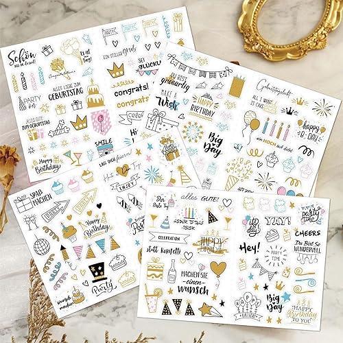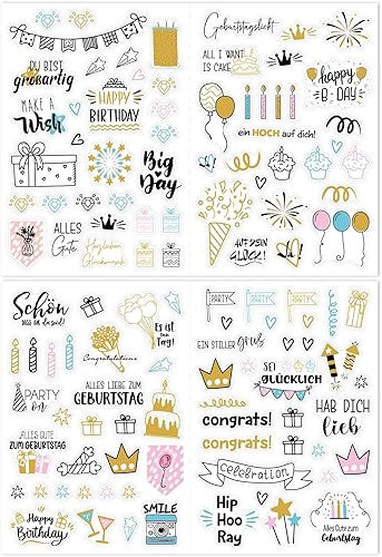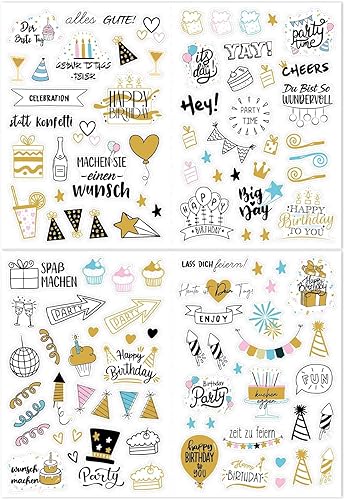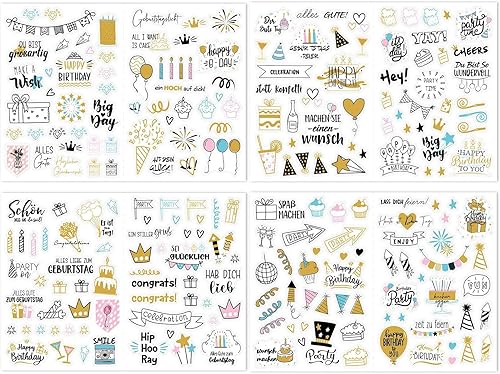 Gommette Anniversaire 4 Pièces 225 Stickers Joyeux Anniversaire, Stickers Scrapbooking Anniversaire, Autocollants pour Livre d'or D'anniversaire Sticker Décoration Aniversaire Autocollants