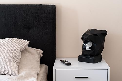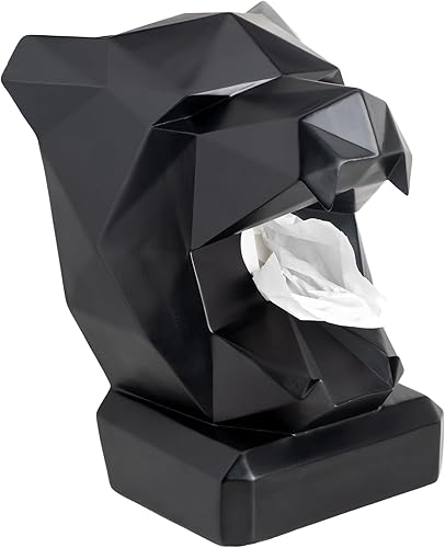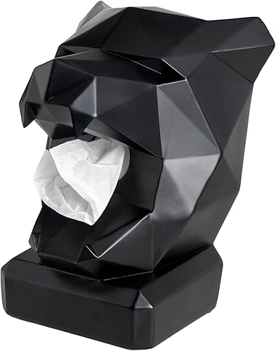 NEUSTEIN Panther Boîte à mouchoirs en forme de tête de panthère noire design pour cuisine, salle de bain, salle à manger et chambre à coucher 21 x 23 x 30 cm stable et lourde