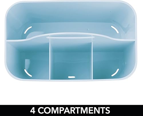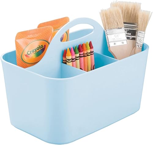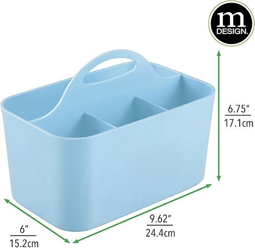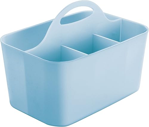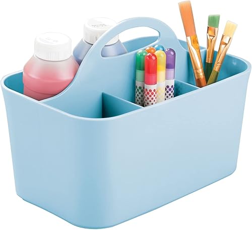 mDesign caisson de bureau portable – petit organiseur de bureau pour ustensiles de bricolage et de couture – boite de rangement en plastique pour stylos, boutons, ciseaux et peinture – bleu clair