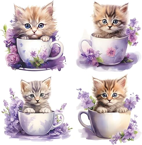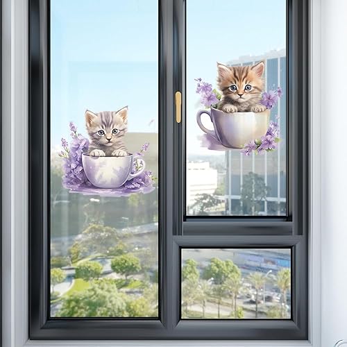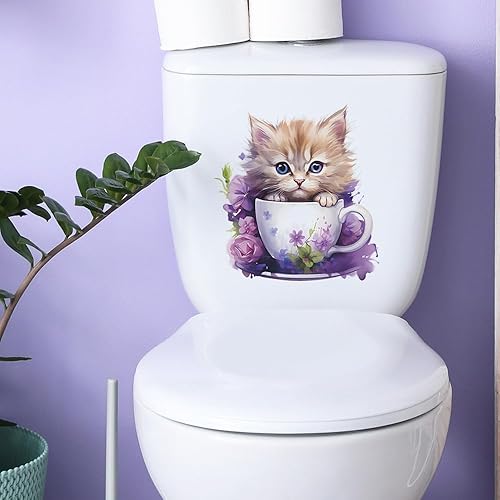 Burkfeeg 4 Pièces Chat Mignon Stickers Muraux - Sticker Salle De Bain, Voiture, Abattant Wc, Kawaii Pour La Décoration De La Chambre Murs 27x29cm