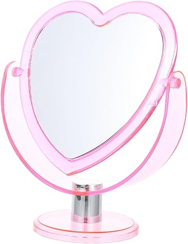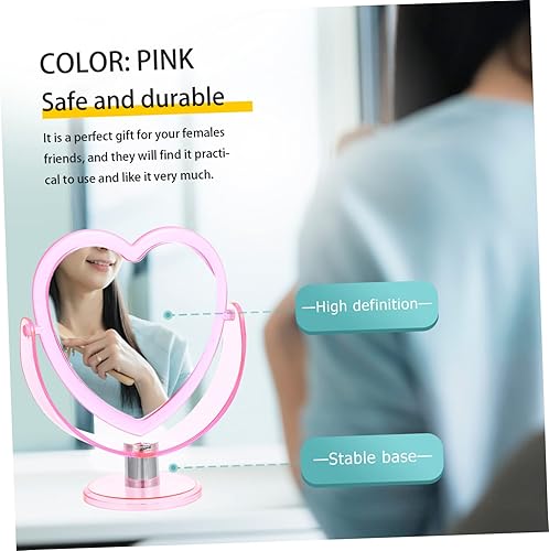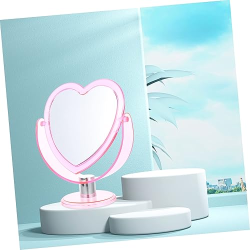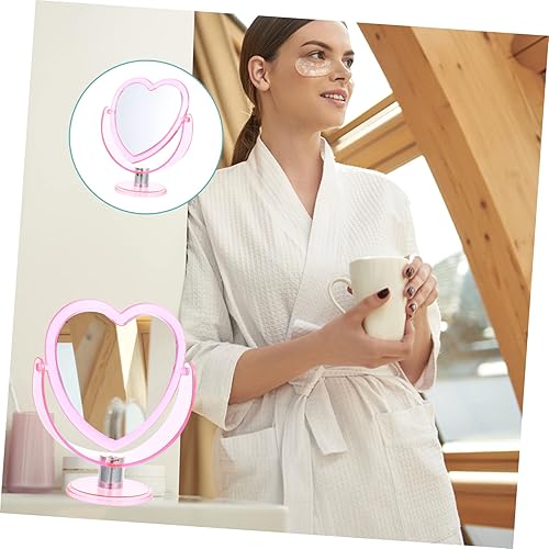 CLISPEED Miroir de dirigé la Commode Bonjour Miroir de Maquillage Coeur beauté avec loupe Miroir de Maquillage en Forme de cœur Miroir cosmétique en Forme de Coeur Acrylique Rose