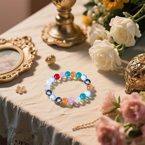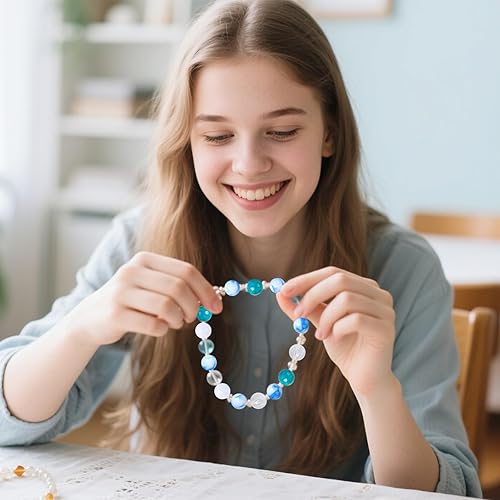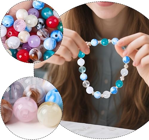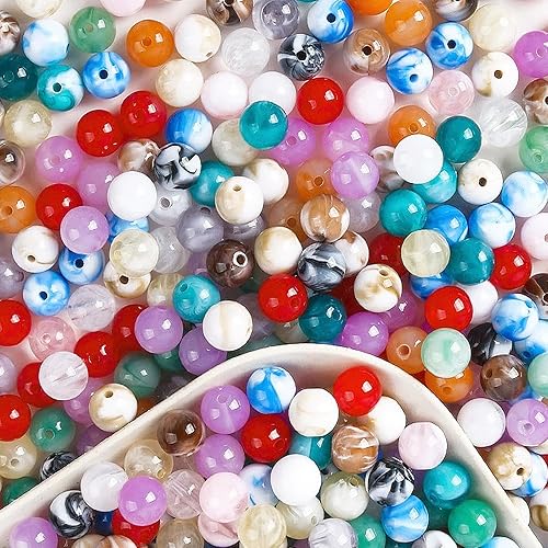 Lot de 100 perles rondes en vrac de 8 mm pour bracelets - Imitation acrylique - Multicolores - Perles naturelles avec trou - Pour la fabrication de bracelets, colliers, bijoux