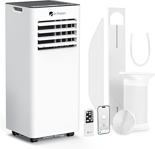 DR.PREPARE Climatiseur Mobile Silencieux 7000 BTU, Climatiseur Portable 4 en 1, Refroidissement, Déshumidificateur, Ventilateur et Modes Sommeil, Télécommande, Refroidit 20 m², Minuteries 1-24H