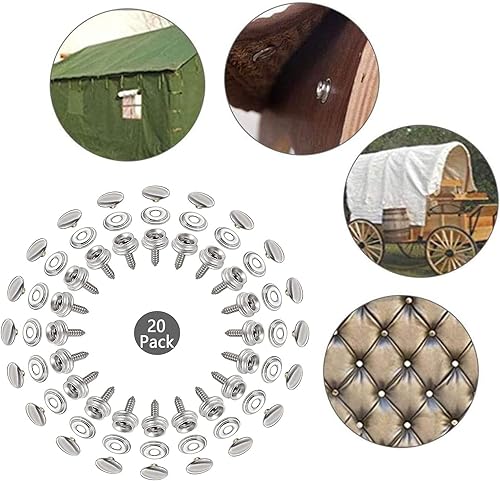 20 Pièces Boutons Pression Toile Marine, Boutons Pression en Acier Inoxydable, Kit de Fermeture à Pression, Kit de bouton Pression à Visser, Pour Bateau, Toile de Yacht, Tente, Bâche, Cuir