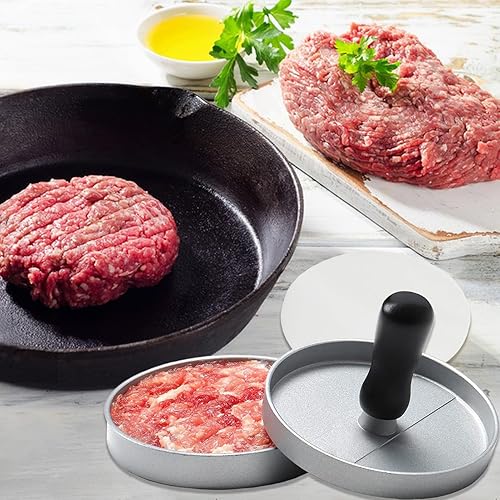 Chingcoo Presse à hamburger avec 100 feuilles de papier sulfurisé - Machine à hamburger - Presse à hamburger ronde - Presse à hamburger