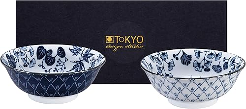 TOKYO design studio Flora Japonica Set de 4 Bols Bleu-Blanc, Ø 12 cm, Hauteur 6,3 cm, env. 300 ML, Porcelaine Japonaise, décor Floral Japonais, boîte Cadeau Incluse