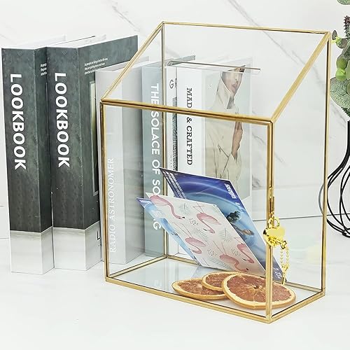 Homtone 23cm Boîte en Verre pour Cartes de Mariage avec Fente et Serrure, Terrarium Géométrique doré Fait à La Main, Boîte de Présentation Transparente pour Réception de Mariage, Décoration, Souvenir