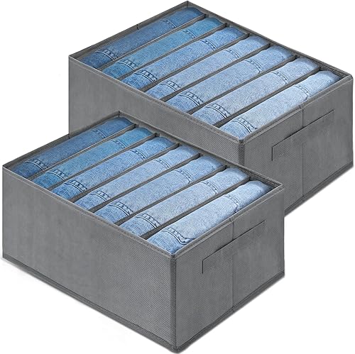 TENXSNUG Boîte de Rangement Vetement, 2PCS Armoire Organisateur de Vêtements Jeans Organisateur de Tiroir Pliable pour Jeans, Pantalons, Leggings, 7 Grilles