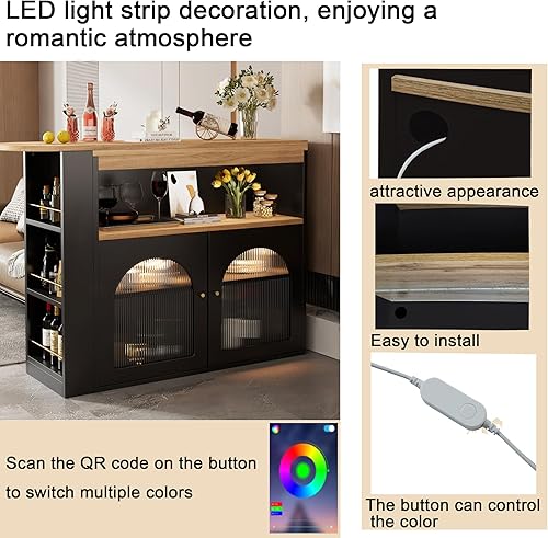KUAKE Table de bar moderne extensible avec espace de rangement - Table de bistrot pivotante - Pour salle à manger - Avec LED de 1 m de long - Blanc