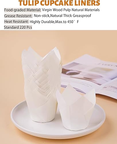 220 Pièces Caissette de Muffins en Papier Tulipes, Cupcake Tulipe Moules à Muffins de Mariage Cupcake Wrappers Moules à Pâtisserie en Papier pour Les Fêtes