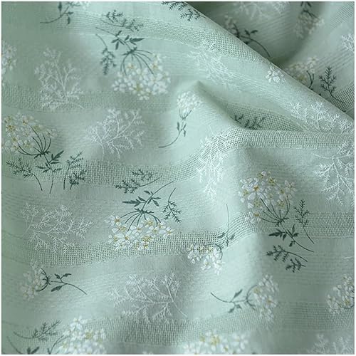 Tissu en coton brodé à motif floral pour couture, vêtements, jupes, loisirs créatifs, demi-mètre (vert, 1 m x 1,48 m)
