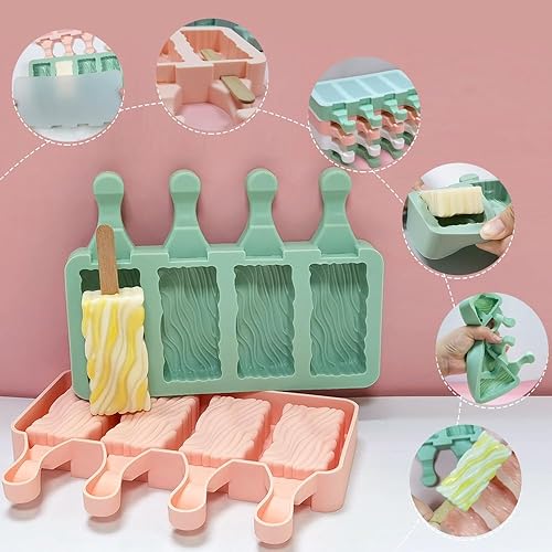 KUIRUNRX® Moules à Glace Silicone, 2 Pcs Moule à Dessert, Moule à Crème Glacée avec Couvercles, Réutilisable, pour Maison Dessert, Jus de Fruits, Crème Glacée, con 50 Bâtonnets en Bois (B)