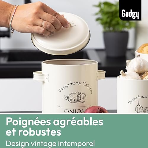 Gadgy Boite Pomme de Terre | Ensemble de 3 Boite Metal Vintage | Rangement Pomme de Terre Oignon | Decoration Cuisine | Range Oignon et Ail | Bac Oignons | Boite de Conservation Pomme de Terre