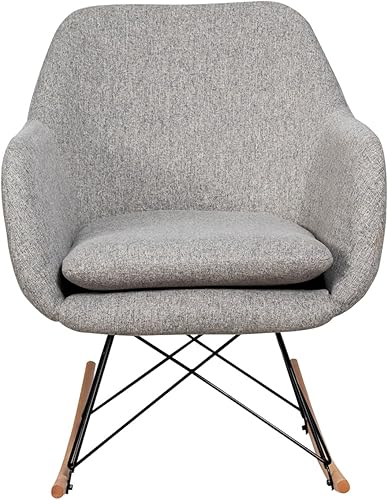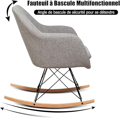 RELAX4LIFE Fauteuil à Bascule Rembourré avec Dossier et Accoudoir, Chaise Relaxante sur Pieds en Métal et en Bois de Hêtre, Fauteuil à Oreilles pour Salon, Chambre, Balcon, Terrasse, Jardin 65x75x83cm