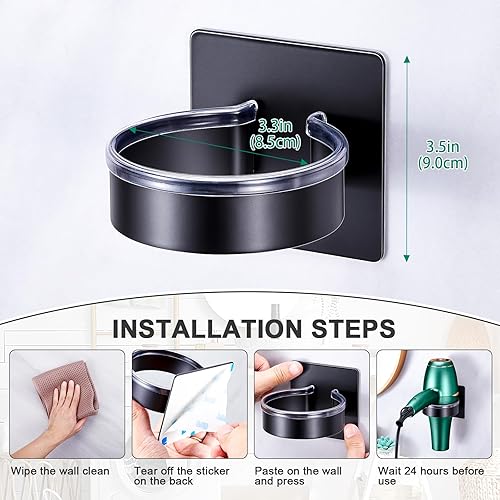 WAYASI Support mural pour sèche-cheveux noir mat, support de sèche-cheveux, support adhésif pour sèche-cheveux, organisateur d'outils pour cheveux, support de sèche-cheveux pour coiffeuse de salle de