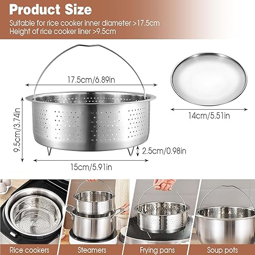 RAKUTE Insert Vapeur,17.5 Cm Calibre Panier Vapeur,304 de Panier Vapeur en Acier Inoxydable avec Plaque MéTallique, Support Et PoignéE,pour RéChauffer en-Cas, Soupes, Fromage, LéGumes, Pain