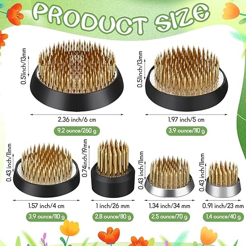 Grendly Lot de 6 grenouilles à fleurs rondes en laiton, porte-fleurs, vase Ikebana japonais, arrangement floral Kenzan, outils de fixation de fleurs
