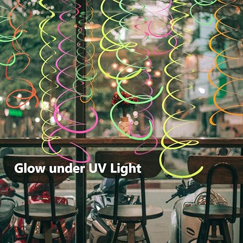 KARLOR Lot de 10 guirlandes de décoration de fête à lumière noire - 2 guirlandes néon - Papier UV - Lumineux sous lumière UV - Guirlande de fête disco - Guirlande en papier néon - Lumière noire