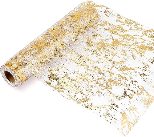 Ziiyoilh Table, Rouleau de de Tulle de Polyester éTincelant avec Feuille d'or, DéCoration de FêTe d'anniversaire de Mariage de NoëL 28 Cm X 10 M