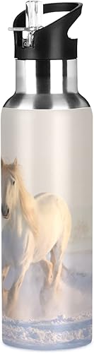 Art Animal Mignon De Cheval Isotherme Bouteille d'eau avec Paille, Gourde Sport en Acier Inoxydable 600ML Gourdes sans BPA pour Enfant Garçon Fille École Bureau
