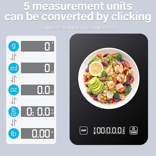 Balance de Cuisine Électronique,balance numérique précise pour la nutrition avec écran LCD,avec application Smart Scale,pour analyser la valeur nutritionnelle des aliments et compter les calories,Noir