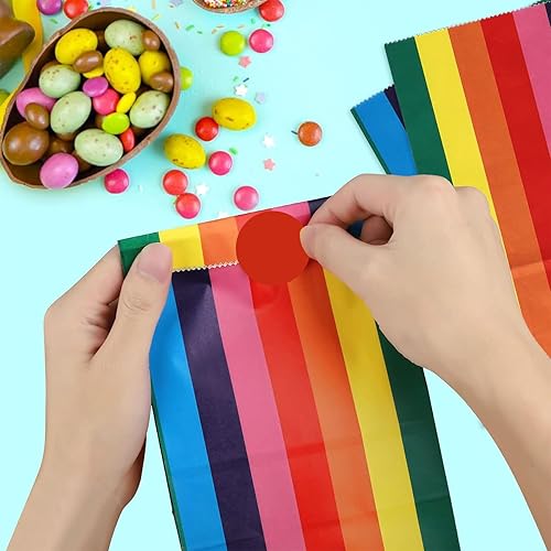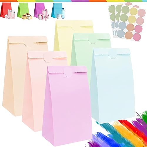 30Pcs Sac Papier Cadeau Petit avec 36 Autocollants 24x13x8cm,Pochette Cadeaux Papier Macaron,Pochette Cadeau Anniversaire Enfant,Sachet Bonbon Coloré pour Mariage,Noël,Halloween,Anniversaire,Party