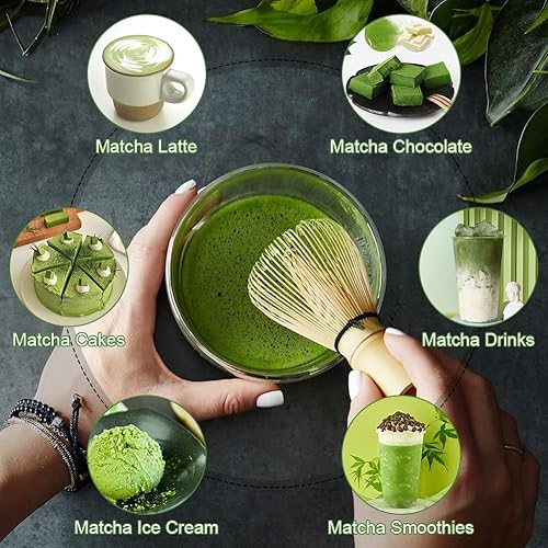 HOTUT Fouets à Matcha, 4 Pièces Ensemble de Balais à Matcha, Kit Accessoire pour Cérémonie du Thé Matcha-Fouet en Bambou, EnsembleThé Matcha, Cuillère Traditionnelle, Cuillère à Thé