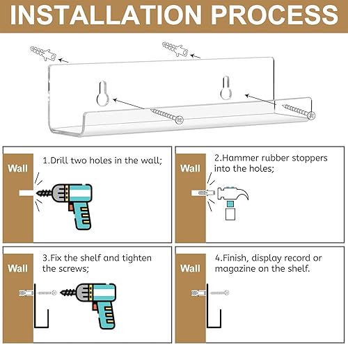Ezydka Lot de 6 supports muraux pour disques vinyles - 10 x 3,5 x 3 cm - En acrylique - Pour disques, albums photo et objets de collection