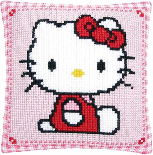 Vervaco Cross Stitch Cushion Kit House Decorating HELLO KITTY DIY Art & Craft Embroidery Tapestry Kit Creative Activities Art Project For Adults ca.40x40 cm Gift Set
