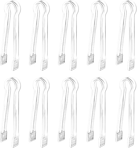 SAVITA 10 Pièces 14,6 x 1,7 cm Pinces de Service Buffet, Pinces à Glace en Plastique Transparent Petites Pinces de Cuisine pour Buffets Apéritifs et Desserts (Transparent)