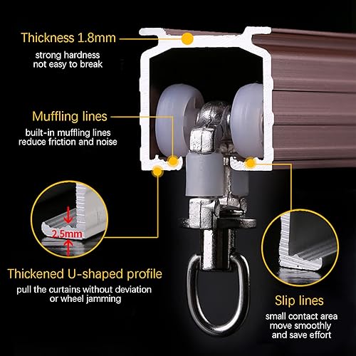 TEN-HIGH Tringle à rideau simple, Pour montage au plafond, Pour la séparation du salon et de la chambre à coucher, Avec crochets à rouleaux(blanc ivoire, 2pc*1.5m)