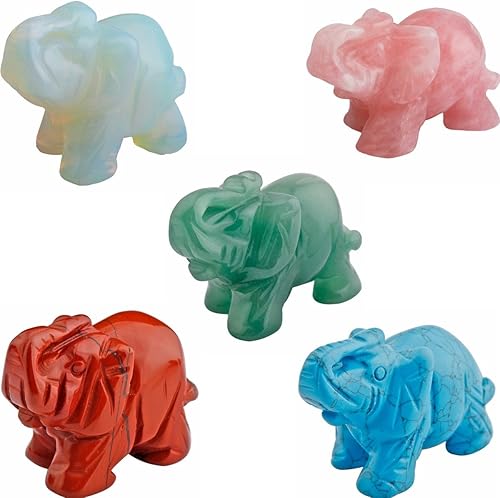mookaitedecor Opalite Statuette Elephant Decoration,Figurine Sculpté en Pierre Guérison Statue Décor Table,1.5 Pouces