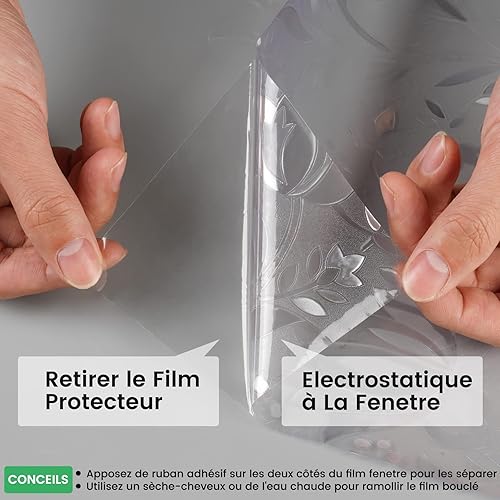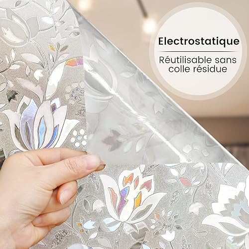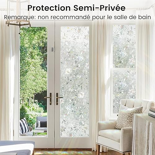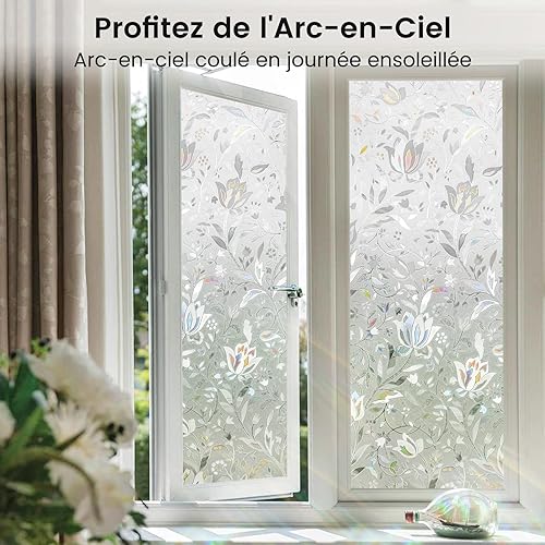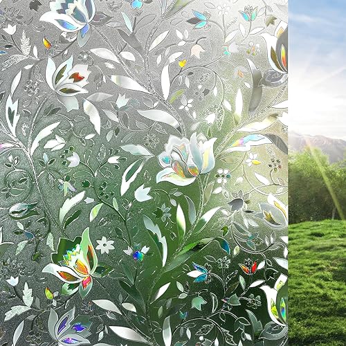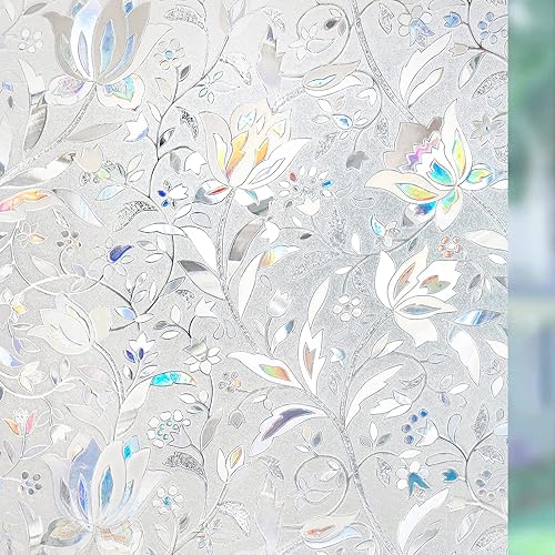 rabbitgoo Film de Vitre Décoratif et Protection de la Vie Privée Anti-UV Film Statique pour fenêtre Motif Floral de Tulipes en 3D Sticker Fenêtre Épais pour la Maison,la Cuisine,Le Bureau, 44.5x300cm