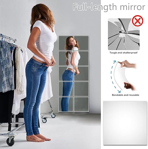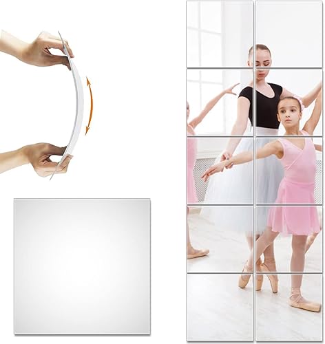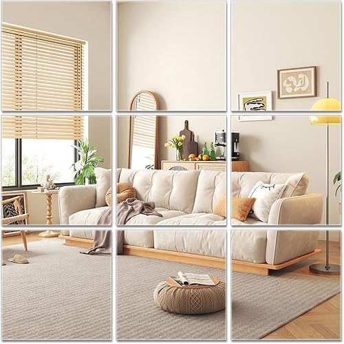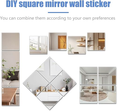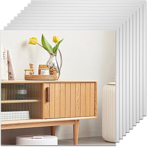 10PCS Miroirs Muraux Autocollant, 30x 30cm Stickers Miroirs Autocollants Carrés, Miroir Mural Acrylique Adhésif 3D Amovible Ultra-Minces pour TV Fond Décoration Chambre Entrée Salon(30x30cm)