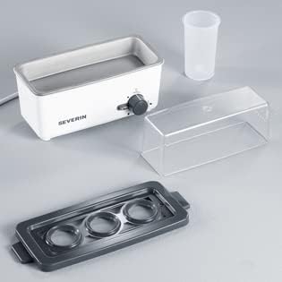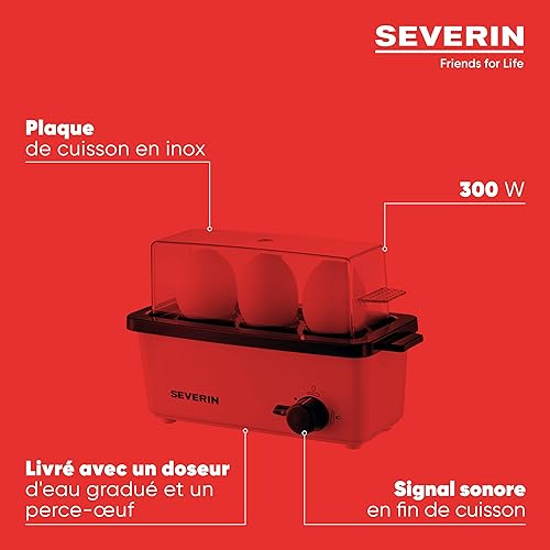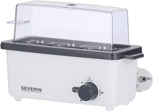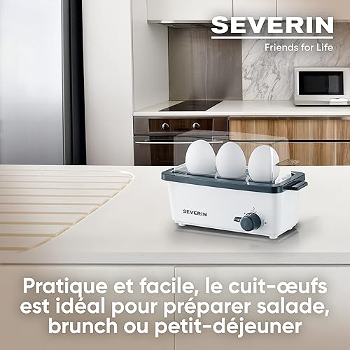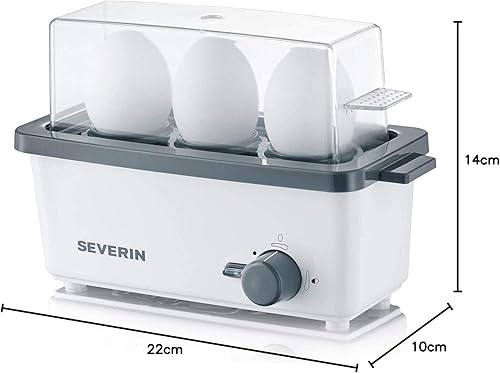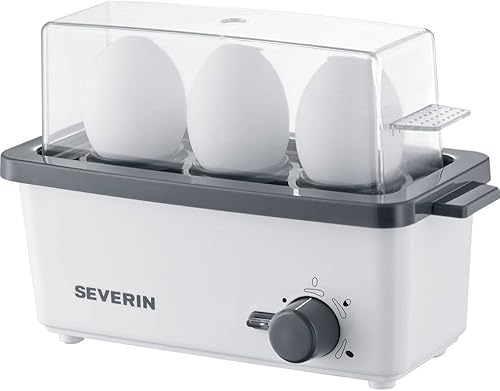 SEVERIN Cuiseur à œufs 300 W, Appareil de cuisson pour 1 à 3 œufs, Doseur d'Eau Gradué et Perce-Œufs Inclus, Cuit-œufs avec contrôle électronique du temps de cuisson, blanc/gris, EK 3161