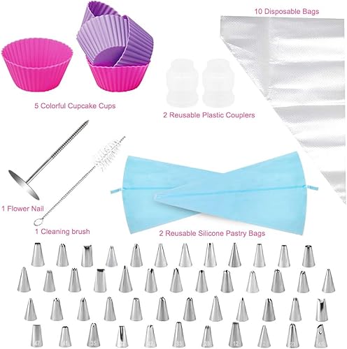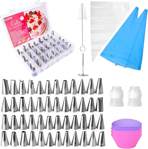 Douilles Pâtisserie 70Pcs ,Cadrim Poche à Douilles Patisserie DIY Kits en Inoxydable pour Décoration de Gâteaux Crème (48 Douilles et 22 Accessoires)