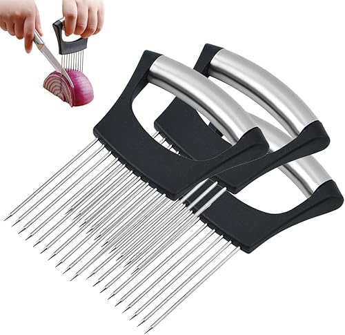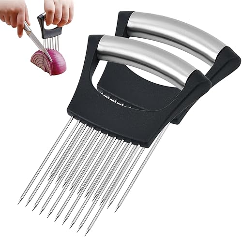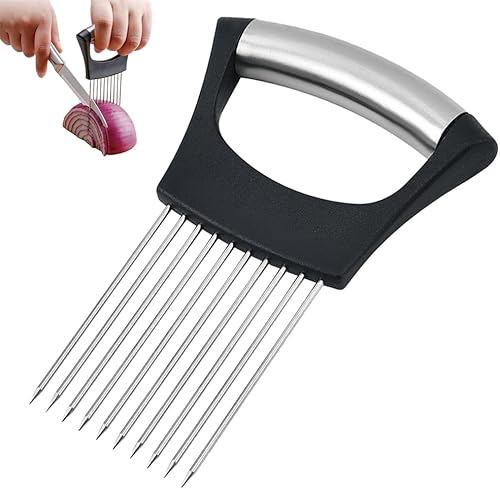 Stainless Steel Onion Slice Holder, 2025 New Onion Holder Cutter, Lemon Slicer, Chopper Slicing Assistant Tool for Meat, Potato, Tomato Kitchen Tools, Convenient Slicing (1PCS)