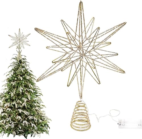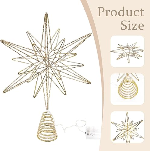 Etoile Sapin De Noel Doré | Etoile pour Sapin De Noël | Pointe De Sapin Étoile Lumineuse, Etoile Sapin De Noel Lumineuse, De Sapin De Noël avec Lampe LED