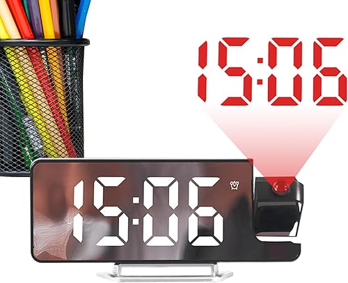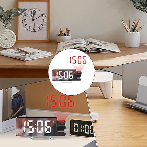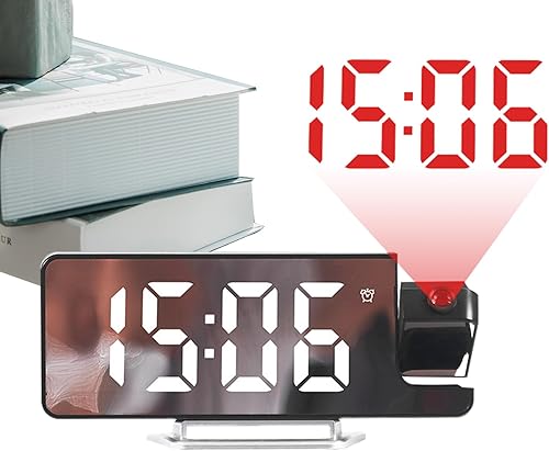 Réveil projecteur de Chevet, Horloge de Projection de Plafond, Affichage LED à Gradation Automatique, Design décoratif Moderne, minuterie réglable pour Salon, Chambre à Coucher, Salle de