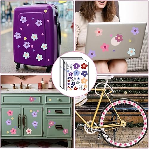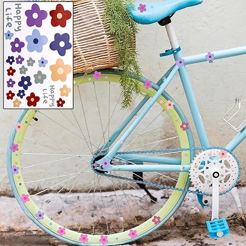 Nurila Lot de 6 autocollants pour vélo - Motif fleurs - Autocollants pour vélo - Pour enfants - Cadre d'extérieur - Paillettes - Pour casque, skateboard, bagages, valises - DIY