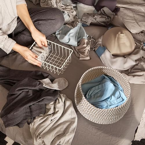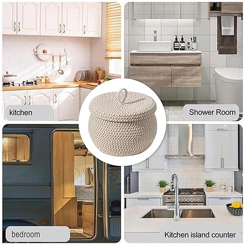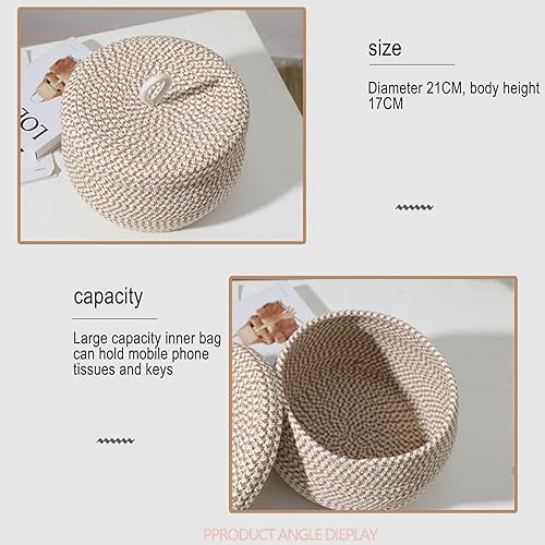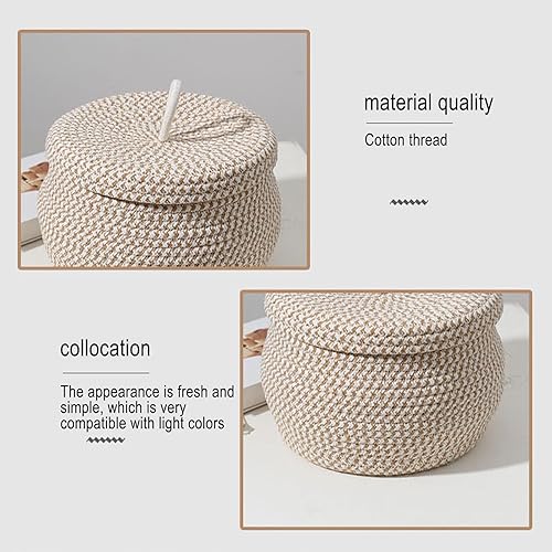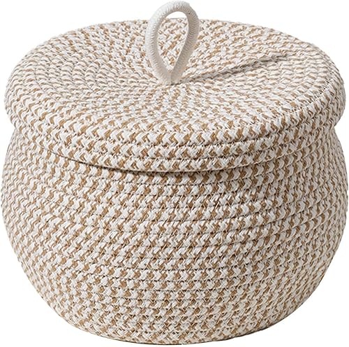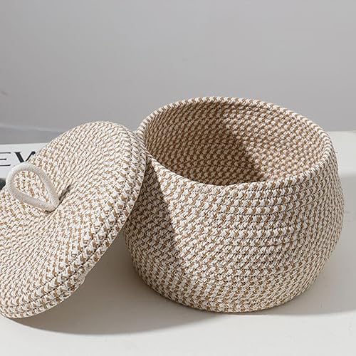 Paniers de Rangement en Corde Tissée, Panier de Rangement avec Couvercle, Panier Rangement Salle de Bain, Paniers et Boîtes de Rangement Multifonctionnels pour Salon Chambre à Coucher